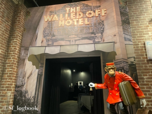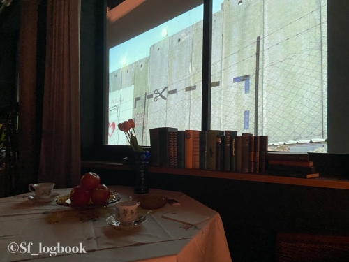 2017年に、イスラエルとパレスチナを分ける分離壁の前にオープンしたホテル。壁で国を分断するイスラエルの政策に疑問を持ったバンクシーがプロデュースしたホテルです。 このホテルは、窓から見える景色が分離壁だけであることを皮肉って作られました。展示会では、実際のホテルの窓際からの景色を再現しています。