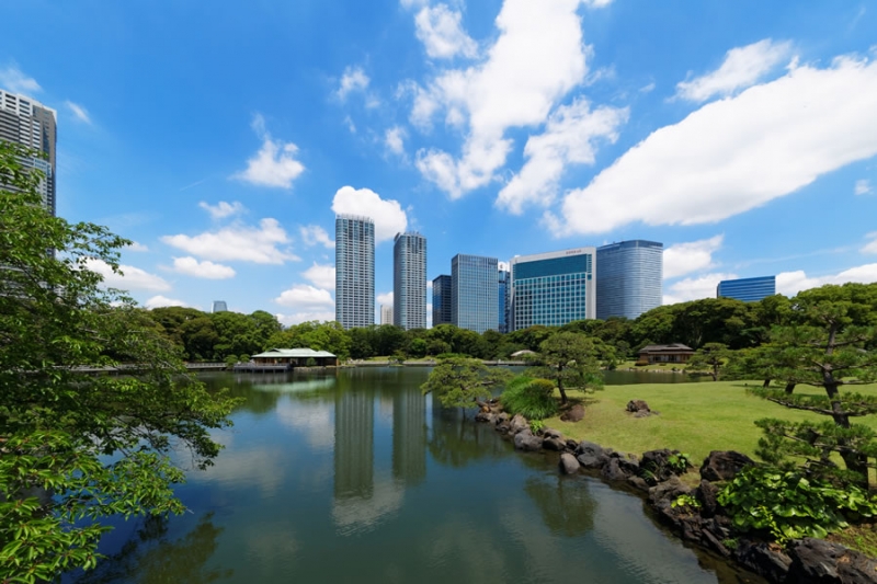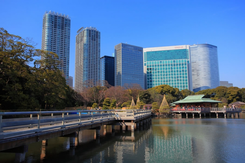 高層ビルを借景にした美しく広大な”浜離宮恩賜庭園”で和Trip