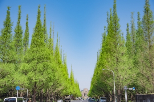 明治神宮外苑といえばいちょう並木が有名です。秋はもちろん景色がキレイでお散歩するのがオススメですが、それ以外の季節でも色々楽しめる場所なんですよ。神宮球場で野球を見るのも良し、ゴルフ練習場で打ちっ放しを楽しむも良し、バッティングセンターでストレス解消するのも良し、カップルでも友達同士でも楽しめる、スポーツが好きな人が楽しめる施設がいっぱいあるのです!疲れたら休憩できるカフェもいくつかありますよ。