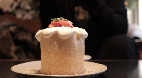 こちらは、歌舞伎町にほど近い場所にある「Breath Cafe」です。お店の人気メニューは「おひとり様シフォンケーキ」。これは、1人でケーキをワンホールを食べてみたい!という願いを叶えるべく、誕生したという夢のようなケーキなんです。かなりのボリュームですので、おひとり様というネーミングですが、2人で食べてももちろんOK。