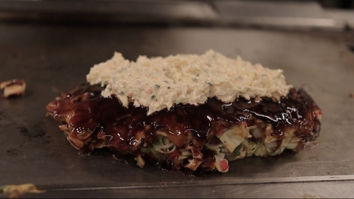 特におすすめなのは、「海の幸タルタルDX」です。お好み焼きの上にタルタルソースが乗っていて、すごいボリューム!お好み焼きとタルタルソースって意外と合うんだな、と新しい発見ができる新感覚です。ぜひ召し上がってみてくださいね。