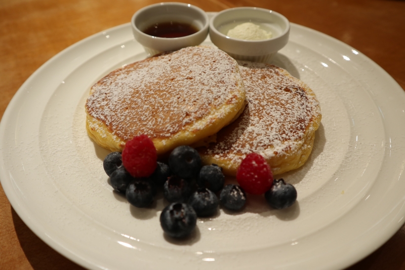 スイーツ系の朝食として、「フラッフィーフレンチトースト」または「レモンリコッタパンケーキ」のどちらかを選べます。どちらもとってもふわふわの食感で、大変人気のあるスイーツメニューです。