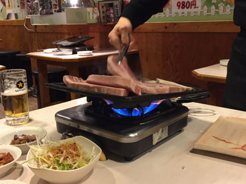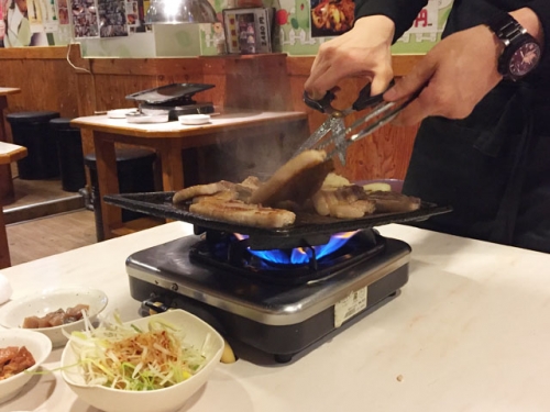 味ちゃんで、訪れた人の多くが注文するのが、名物の厚切りサムギョプサルです。