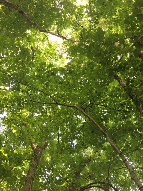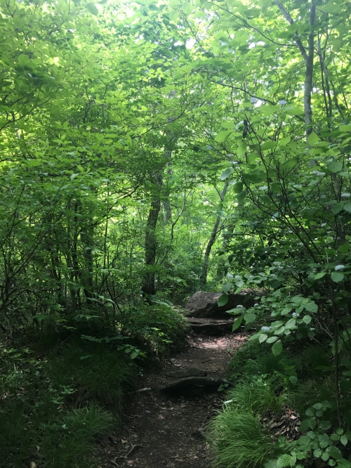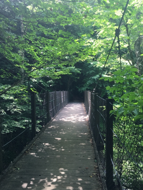 緑が美しく、まるでトトロが出てきそうな雰囲気です。木のトンネルをくぐり抜け、長い階段を下るなど、楽しいルートです。