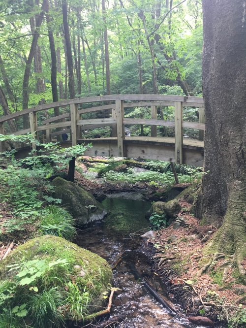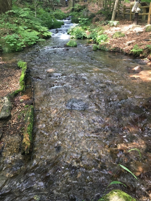 いよいよゴール地点まで迫ってきました。段々と水の量も増えていっています。数か所から湧き出る水の上には、アーチ型の橋が架けられています。
