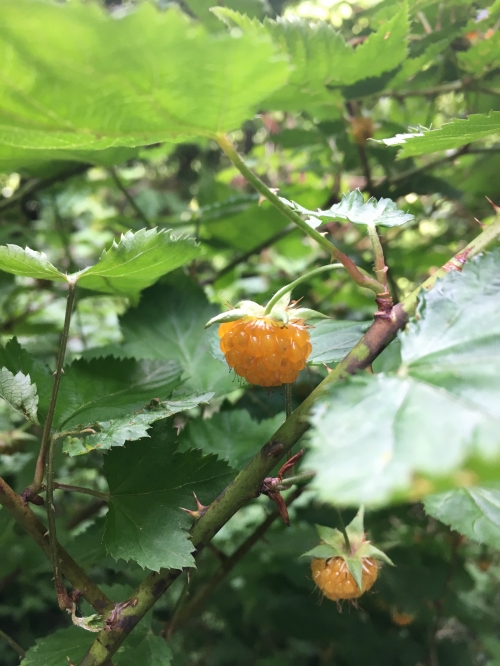 ここまでの道のりは、約30分~1時間程度です。帰りは同じルートを戻りましょう。途中、黄色い木苺も見つけることができました。