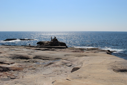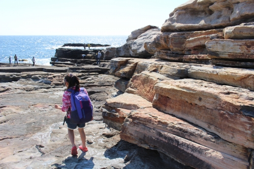 ビーチを堪能したら、バスで10分ほどの「千畳敷」へ(最寄りバス停は「千畳口」)。こちらは、大昔の砂岩に形成されたスロープ状の岩盤が、約4ヘクタールにわたって広がる景勝地です。やわらかい砂岩が長い年月をかけて風雨に削られ、現在の姿になったのだとか。まさに畳が千枚敷けるほどの圧倒的な広さを誇り、あちこち探検して回るのも楽しい!