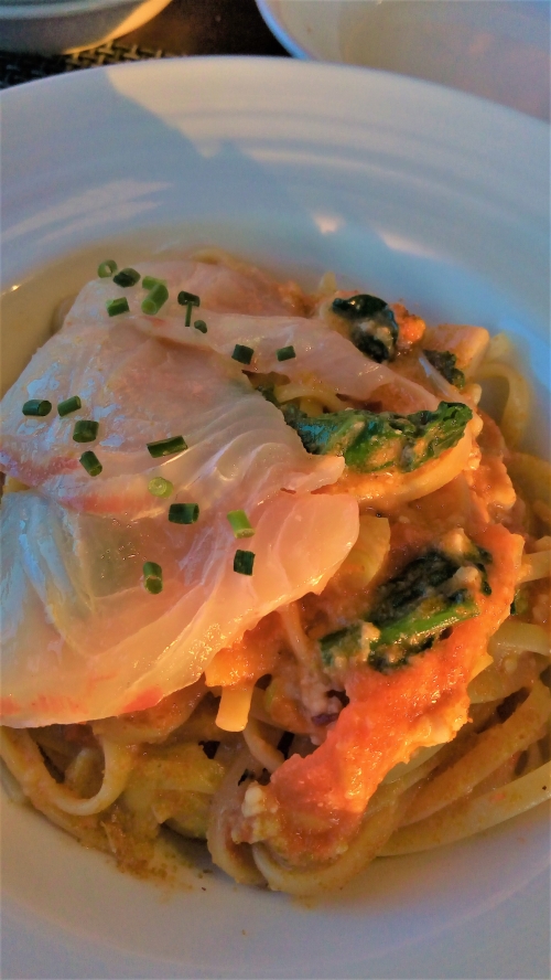 • 写真:かなたあきこウニのパスタに、とれたての鯛をトッピング!(価格は時価)
