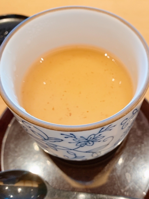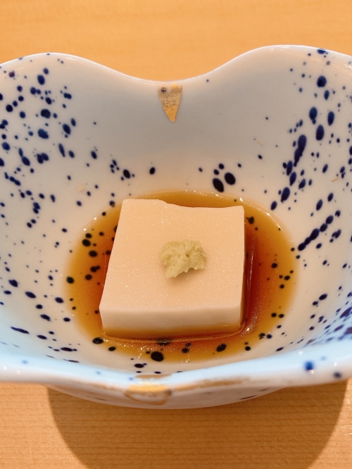 お寿司やアワビの白ワイン蒸しの他に、胡麻豆腐、茶碗蒸し、あら汁、デザートが出てきます。