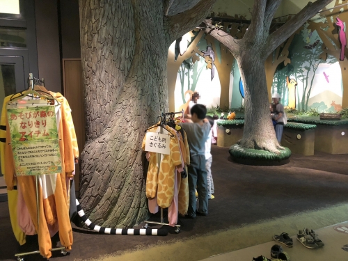 登りきったところにあるのは、「ふしぎな森の城」。生き物になりきって森の中を動き回って遊んだり、飼育員さんの仕事場を再現したバックヤードを覗けます。