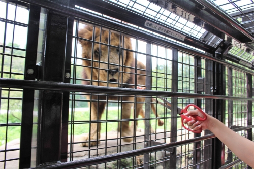 骨付きの鶏肉をあげると、ボリボリと咀嚼しながらあっという間に食べてしまい、迫力満点!小さなお子さんは怖くてあげられないこともあるかもしれませんので、大人が代わってあげてください。キラリと金色に光るオスライオンの眼をこんなに間近で見られるのも、なかなかない経験です。