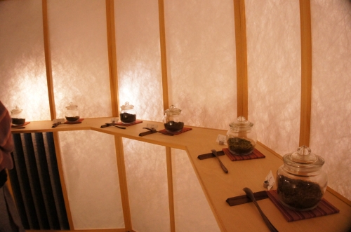 ソファで本を読んだり、飲み物を飲んだりすることができる空間です。ここに10種類以上のお茶葉が置いてあり、どれでも好きなものを飲むことができます。