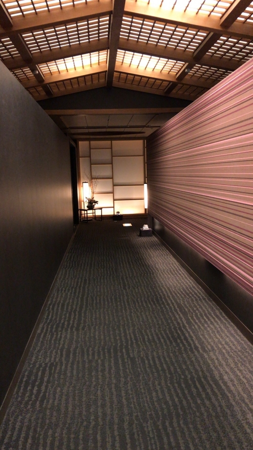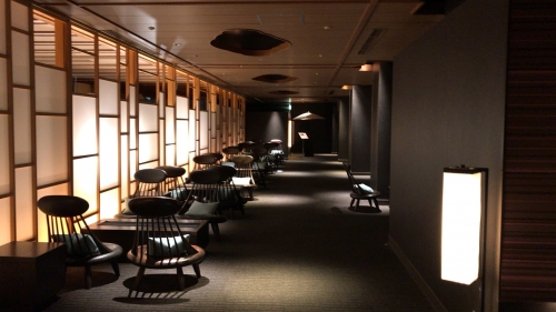 エントランスに一歩足を踏み入れると、和モダンの世界が広がります。落ち着いて過ごせるよう、照明はあえて落とされているのです。