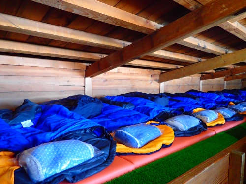 山小屋は、ホテルや旅館のイメージとは違います。小屋によっては、二段ベッドでカーテン付きというタイプもありますが、基本的には寝る、休むという必要最低限のことを目的としている施設なので、仕切りのない大広間での雑魚寝が一般的です。混雑時は隣の人と触れ合うほどの距離で寝ることになるので、気になる方は、耳栓やアイマスクを持っていきましょう。