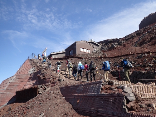 混雑するシーズンには、八合目~山頂付近で登山道が渋滞する場合がありますが、無理な追い越しはしないようにしましょう。先を急いで無理に追い越そうとすると登山道をはずれ、特に夜間は転倒や落石の原因ともなるため大変危険です。