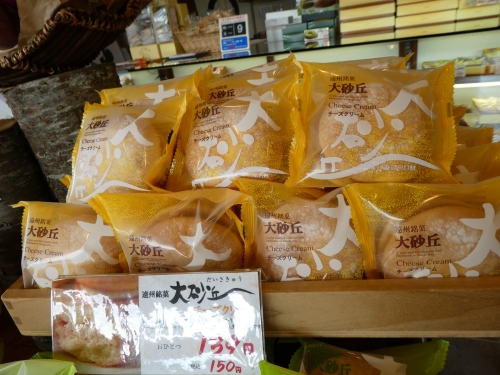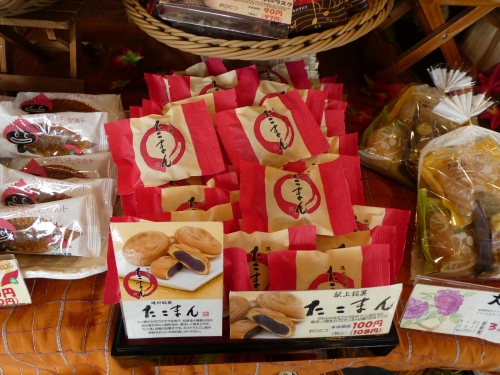 たこまんを代表するお菓子…その名もずばりたこまん(108円)と海岸の砂丘をイメージした大砂丘(150円)。遠州産の野菜や果物を旬のときに味わえるようにと、季節によって商品や味の種類がどんどん変わります。秋の大砂丘には栗味も!その他のお菓子もお芋や栗を使ったものであふれます。
