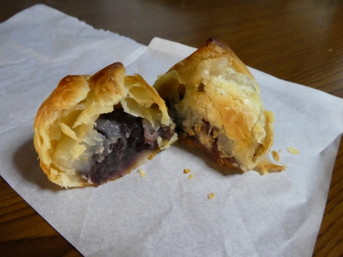 大福が丸ごと入ったもちパイ(162円)も人気。ほんのり温かいパイ生地に包まれた大福のお餅がとろけて、不思議な食感。和洋折衷の味わいです。