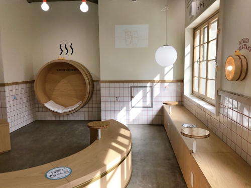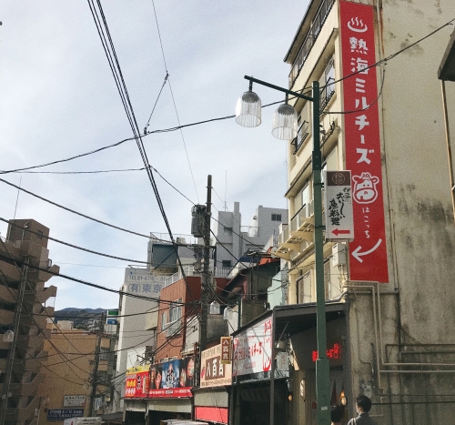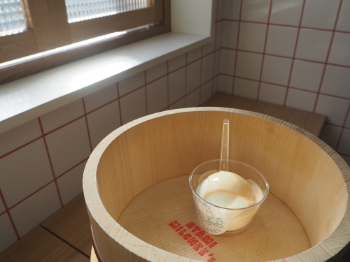瓶詰めのかわいいビジュアルで有名な熱海プリンですが、すぐ近くには熱海ミルチーズという別のお店もあり、ここはイートインスペースがあります。熱海にちなんで温泉をテーマにした内装がかわいい!買ったものも風呂桶で渡してくれるなど、とても凝っています。古い温泉街になんとなく馴染んでいるこの熱海ミルチーズ、要チェックのスポットですよ。