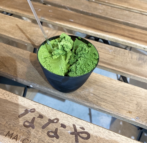 ここに来たら外せないのが抹茶ジェラート!抹茶の濃度が7段階に分かれていて、好きな組み合わせでオーダーできます。一番濃い「7番」は「ここまで抹茶を入れるとは・・・」というようなコメントが書かれているのですが、一番人気というだけあってとってもおいしいです。