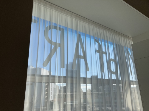 駅前といっても高層ビルが立ち並ぶわけではないので、窓から差し込む光が魅力的な空間です。窓から新幹線の駅が見える美術館、というのは意外とない景色ではないでしょうか。