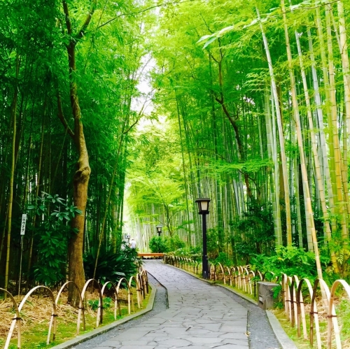 石畳沿いに竹林が生い茂り、小京都の風情たっぷり!