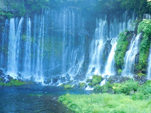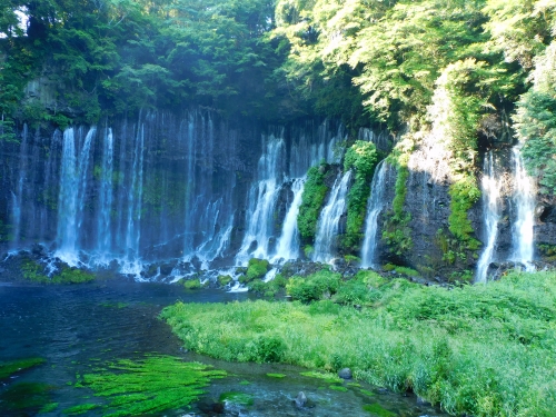 こちらも日本の滝100選に選ばれている静岡県を代表する名瀑で、多くの観光客が訪れる滝でもあります。富士山に降った雨や雪解け水が地下に浸み込み、伏流水となって溶岩層の崖からいく筋もの滝となって流れ落ちる姿はとても美しいです。流れる滝の幅は100m以上にもなり、溢れ出る水量も1日15万トン。そのスケールの大きさにも驚かされます。