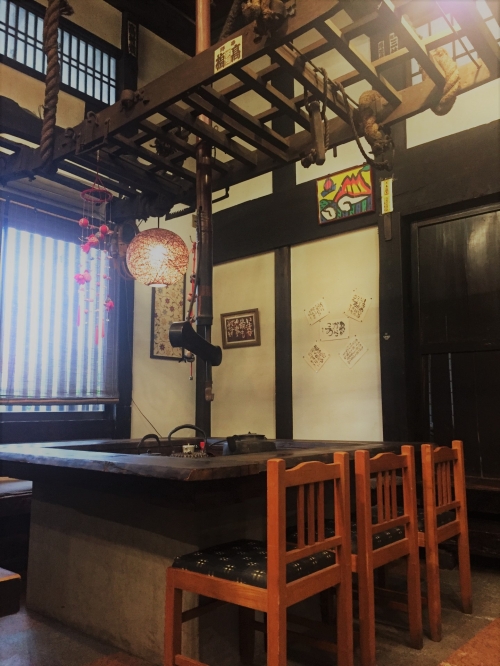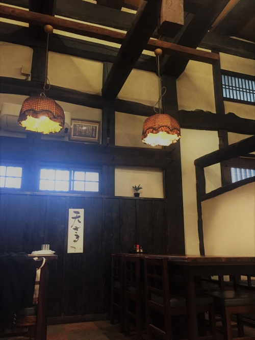 建物は福井県から移築したもので、築200年以上経っているというから驚きです。店内を見ると、梁がむき出しになっています。それがまたお洒落なのですが、「蜘蛛梁造り(くもばりづくり)」という造りだそうです。