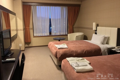 御殿場高原ホテルは、高層階に位置する定員4~6名の和洋室のタイプの部屋と、最大3名迄が利用できるツインルームの2つのタイプがありますが、今回、筆者は5階のツインルームに宿泊しました。ツインルームの部屋では広々としたベットがあり、正面の窓からは富士山を見る事ができます。