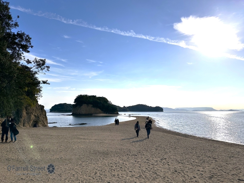 せっかく行くのであれば、干潮時に訪れたいですね。土庄港から車で5分程度の場所にあるので、1日2回の干潮時間をチェックして、先に周るか後に周るかルートを決めると良いと思います。本記事では、島内で一番大きく、フェリーの出入港本数も一番多い土庄港を起点として、夕方のエンジェルロードを見たかったので帰り際に立ち寄るコースでご紹介しています。