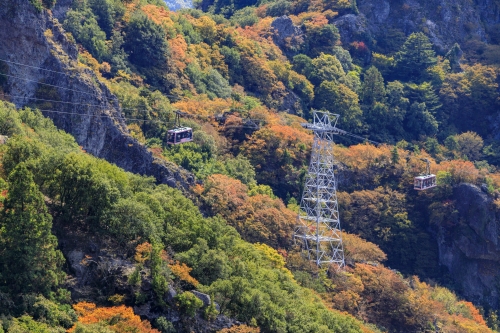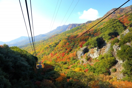 小豆島の最高峰・星ヶ城と四方指の間にある渓谷で、群馬県の妙義山、大分県の耶馬溪と並んで”日本三大渓谷美”のひとつに数えられています。大自然のなかをロープウェイで頂上までのぼり展望台にたどり着けば、四国の山々や壮大な瀬戸内海の景色が広がる絶景スポット。紅葉の名所としても名高く、11月上旬から下旬にかけて色づく山を楽しめます。