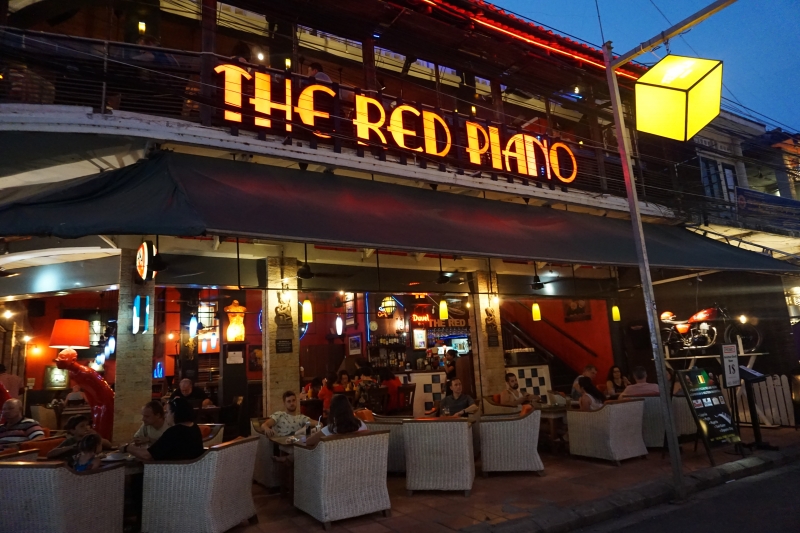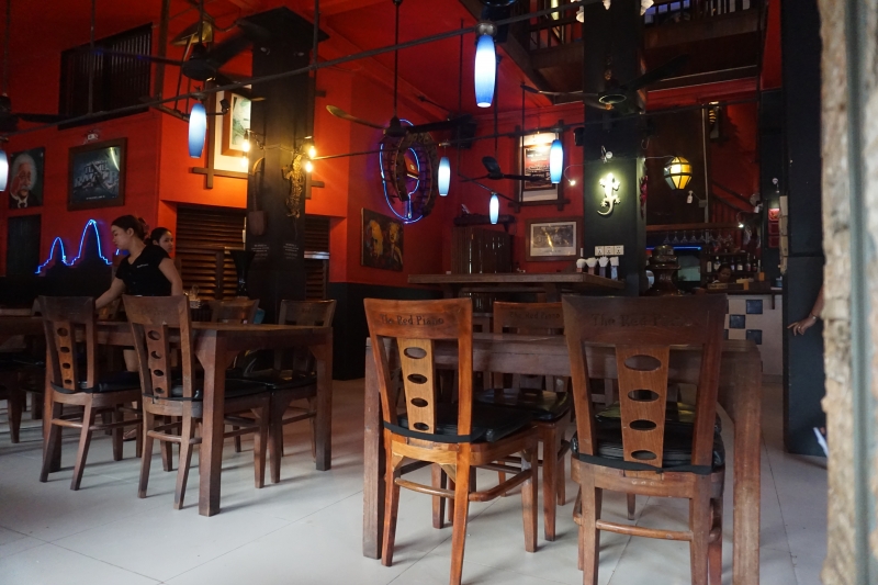 カンボジアといえば、ハリウッド映画の『トゥームレイダー』の撮影地としても有名です。そして『トゥームレイダー』の撮影時に、アンジェリーナ・ジョリーが足繁く通ったのがこの【レッドピアノ】なのです。