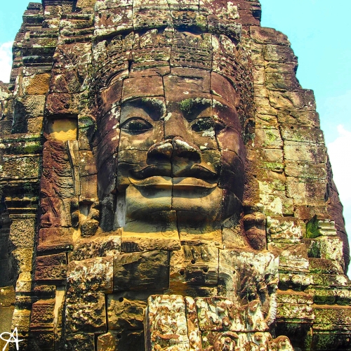 バイヨンとは、美しい塔という意味です。アンコール・トムの中心にある遺跡です。「クメールの微笑み」と称される観世音菩薩の微笑みが塔の四面に掘られており、迫力満点です。遠目から撮影すると塔の多さが伝わる写真になりますし、近づいて撮ると微笑みがよくわかる写真が撮れます。