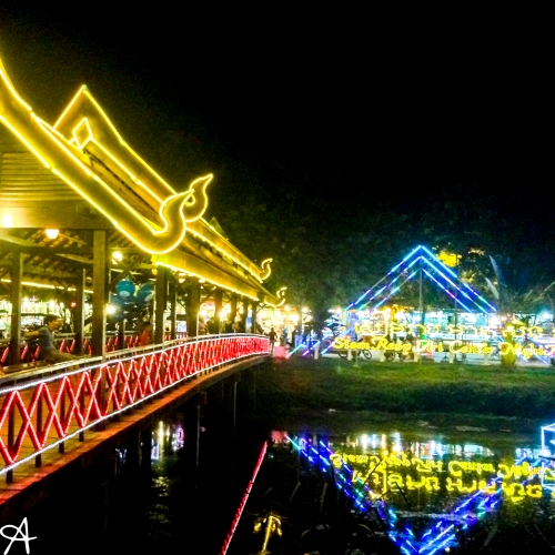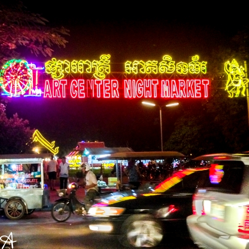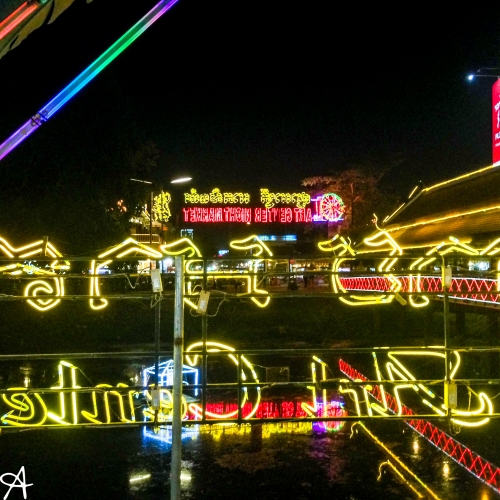 遺跡をたっぷり楽しんだら、原色のネオンがかわいらしい夜の街を楽しみましょう。シェムリアップ川の周辺はライトアップもしており、川面に映るネオンもキラキラして綺麗です。
