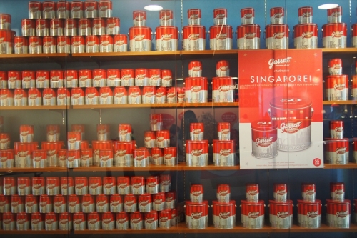 今年3月に他界した、シンガポールの元首相リーククアンユーの顔が描かれた缶「The Legacy Tea」とSG50の文字が書かれた缶「Jubilee Tea」の2つセットで$60。