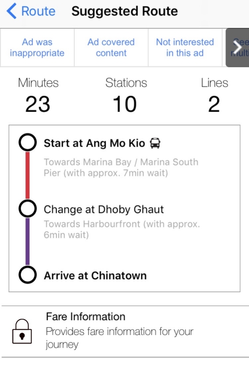 機内モードであってもMRTの駅名がわかれば乗り換え検索ができますので、シンガポール観光の際に持っていて損はないアプリです。