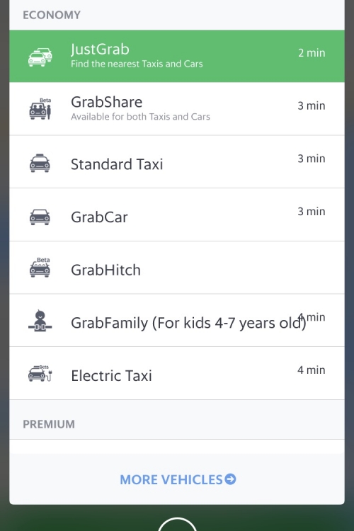 デフォルトで表示されるJust Grabを使用すると、タクシーだけでなく、Grabに登録されたドライバーが運転する車がやってきます。タクシーに限定したい場合は、Standard Taxiを選んでくださいね。