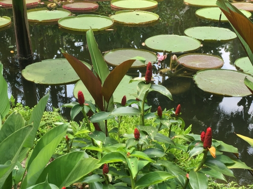 スワンレイクを左に見ながら北上すると、ジンジャー・ガーデンが現れます。ここには、中南米、東南アジアなどの熱帯地方に分布する1,000種以上のショウガが集められています。ショウガについての説明が書かれた看板を見てから進みましょう。