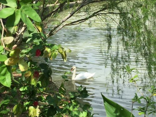 また湖の真ん中には、とても大きな白鳥の彫像があります。本物の白鳥もステキですが、彫像も見事ですよ。湖のまわりでは、魚や亀を見ようと子供達がのぞきこんだりしていて、のどかな光景が広がります。