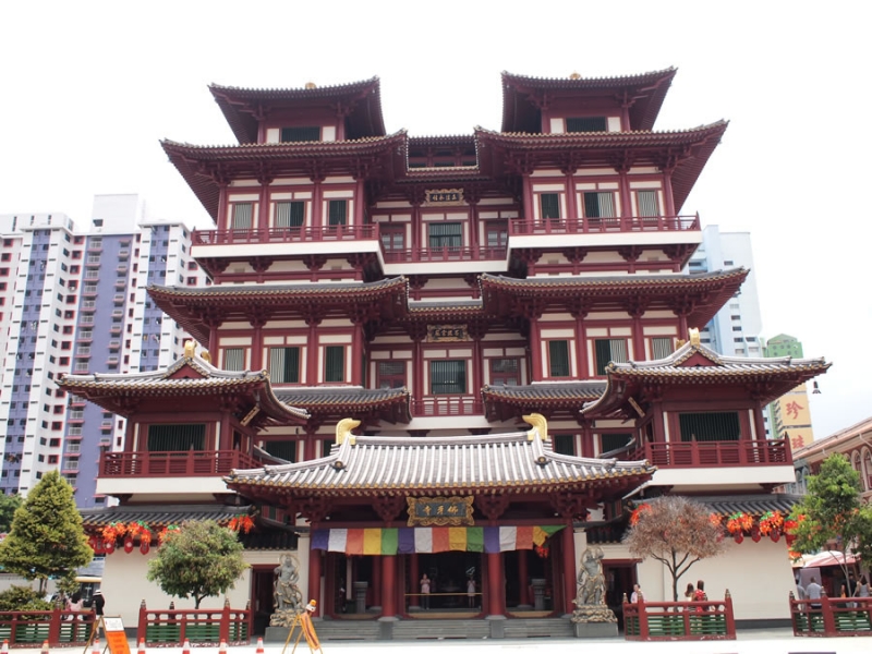 4階建ての寺院で、1階には黄金の仏像たちが置かれ、2〜3階は博物館、4階は仏陀の歯が納められた部屋、そして屋上には庭園もあり、チャイナタウンきっての観光スポットとなっています。
