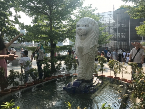 シンガポールのアイコンとも言えるマーライオンが見られる公園。ここではバスが20分停車するので、軽い散策を楽しむことができます。マリーナ湾に面した公園内には、口から水を吹き出す大きなマーライオンとミニマーライオンの2体が存在します。