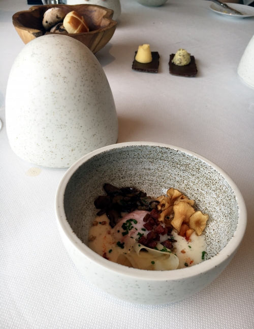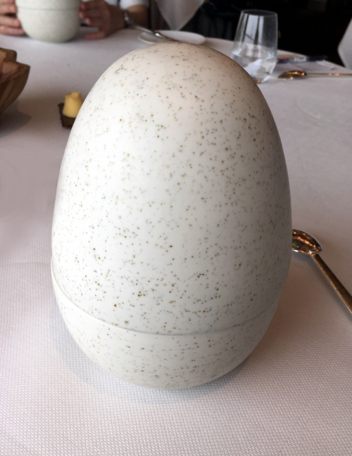 そして大きな玉子のような器で出されたのは、なんと温泉玉子でした!