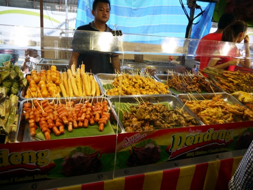 また、食べながらそぞろ歩きができるサテ(ローカルの味付けの串焼き)のお店や、昔ながらのお菓子のお店なども見られます。