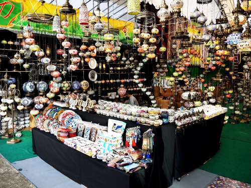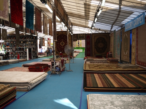 イスラム感のある中東のカーペット、エスニック風でかわいいモロッコ風のライト、カーテンなどのお店も出ています。