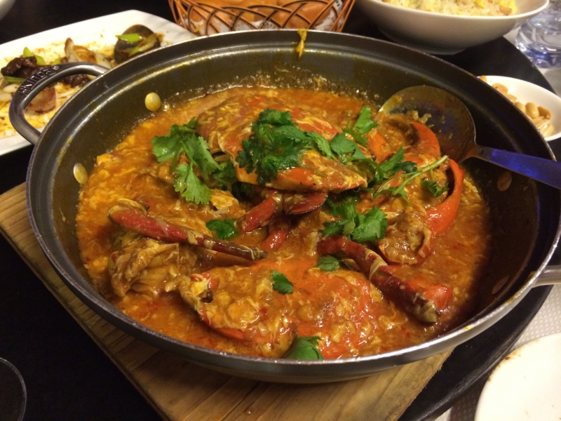 カニを甘辛〜いチリソースで煮込んだ料理「チリクラブ」。カニの凝縮された旨味と、チリやハーブが効いたソースが絡み合う濃厚な味わいのなか、溶き卵が全体をマイルドにしています。手が汚れるなんて気にしない!シンガポーリアンは、女性でも手づかみで食べる人も多いです。そして美味しいソースには、揚げパンのようなパンをつけて、残さず食べるのが◎。