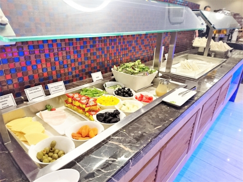 シャワーの後は機内就寝に備えてアルコールはいかが?ビールやワインなど一通り揃っています。日本のビールもありました。さらに、夜食として食べておきたいのがサラダ。名物料理に麺類やごはん物が多いことから、ついつい野菜不足になるのが東南アジアあるある。ここで野菜も補給しておきましょう。