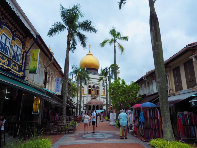 MRTの最寄り駅はBugis(ブギス)駅です。駅からアラブストリートまでは少し距離があります。まずはノースブリッジロードに出て、北の方へ歩くとラッフルズ病院が見えます。それを少し過ぎるとアラビアンなモスク(サルタン・モスク)が見え、アラブストリートはすぐそこです。