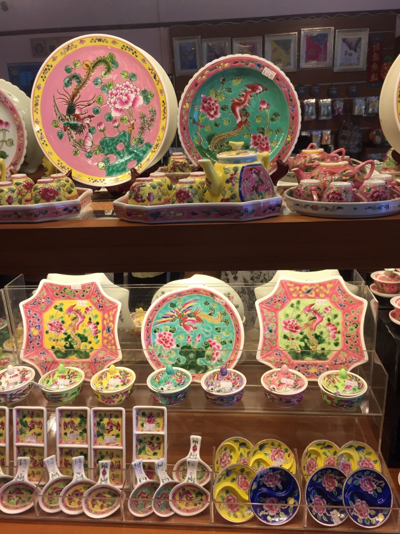 「ルマ・ビビ」では、プラナカン文化を代表する色鮮やかで繊細なビーズや刺繍、華やかでいて優しい色合いの陶器、プラナカン女性の洋服「サロンケバヤ」などが華麗に展示されており、ついうっとりしてしまいます。手作りのプラナカン伝統菓子を購入することもできますよ。