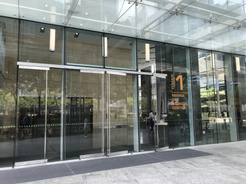 MRTで行く場合、最寄り駅はMRTのDowntown駅。出口Cから、マリーナベイリンクモールに入って「MBFC Tower1」の看板に従って歩き、一階に上がってください。Raffles Place駅からもマリーナベイリンクモール経由で行くことができます。
