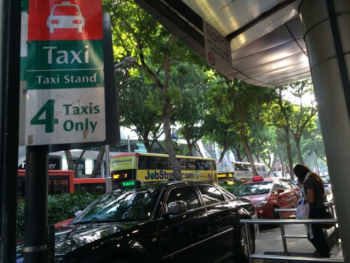 - 交通量の多い通り(オーチャードロード等)では、タクシーを捕まえようとしても止まってくれないことが多いので、そんな時は近くのショッピングモールや通り沿いのタクシー乗り場へ行きましょう。