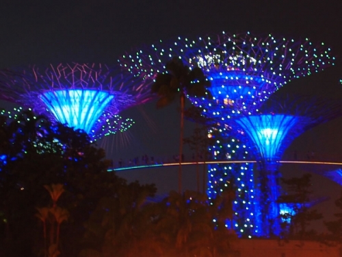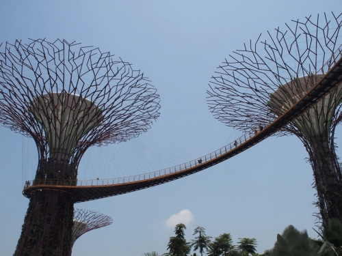 2012年にマリーナベイエリアにオープンした、新定番観光スポット「ガーデンズ・バイ・ザ・ベイ」。近年勢いのあるシンガポールを象徴するかのような、”近未来型”の植物園なのです。一番のみどころは、高さ25〜50mの巨大なツリーが集まる「スーパーツリー・グローブ群」。遠くから見たあとは、近くで見て、その迫力を実感してください!スーパーツリー・グローブの間にかかる全長128mの吊り橋を渡ることもできるので、ぜひトライしてみてくださいね。